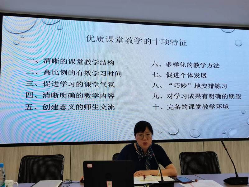 陶红校长从学校使命谈起,她说《义务教育课程方案及课程标准(2022版)》中提到的培养目标就是学校的使命,这一使命的担当者是教师。陶校长结合《融于教学的形成性评价》一书,认为“教师要着力唤起青少年对周遭世界的爱与热情,唤起他们置身于世界之中的积极意向,激发他们生命内在的价值感与意义感。”只有这样教师才能担当起这一使命。她又从“课程、教学、德育、师德师风、安全、学历”六个方面阐述了完成这一使命的主要路径。陶校长希望在新学年里,所有教师都能树立“高热忱、善激励、高影响力”新时代教师形象。最后陶校长用“教育之道无他,唯爱与榜样而已”来勉励教师成为“目中有人、心中有爱、脑中有标、手中有法”的四有新教师。