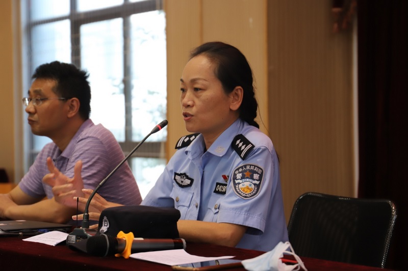 会议伊始,留园派出所的彭美琳警官从中学生容易发生的打架斗殴事件、青春期的自我保护问题、新型毒品等问题为与会师生讲解了《中华人民共和国治安管理处罚法》、《中华人民共和国刑法》、《中华人民共和国未成年人保护法》等多部法律中的相关法律条款,彭美琳警官以自己工作中遇到的实际案例深入浅出地让与会师生明白遵德守法的重要性。