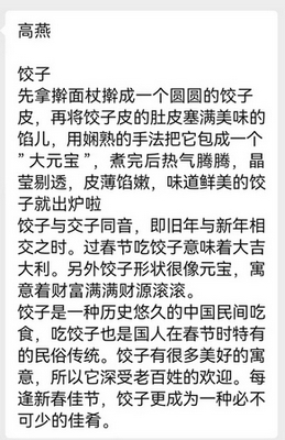 春天的四月,草长莺飞,芳菲流彩。宅居家中的家园学子,按捺不住对春天的向往之情,在语文老师的指导下,开展了以“苏州美食文化探究”为主要内容的阅读节系列线上活动,用读诗文、绘小报、做美食等丰富多彩的形式体验舌尖上的苏州韵味,在读和做的实践体验中让“五育并举”照亮未来人生! 在完成了用诗文与小报带领大家领略苏州美食文化的活动后,全体初一初二学生在爸爸妈妈的陪伴和指导下,走进锅碗瓢盆的厨房间,和父母一起掌勺,精心制作出了一道道色香味俱佳的苏州美食!