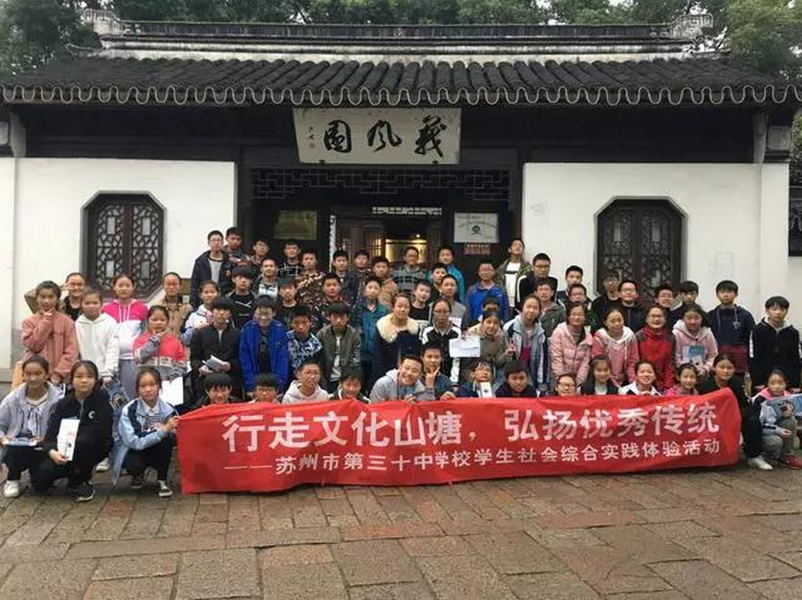 苏州市第三十中学校坐落于姑苏城西北隅。学校环境优美,南邻西园、留园,西毗虎丘山麓,北枕山塘清波,小巧中显井然,错落中呈别致,隽永轻灵,富有生气,是一所小巧精秀的现代化初级中学校。