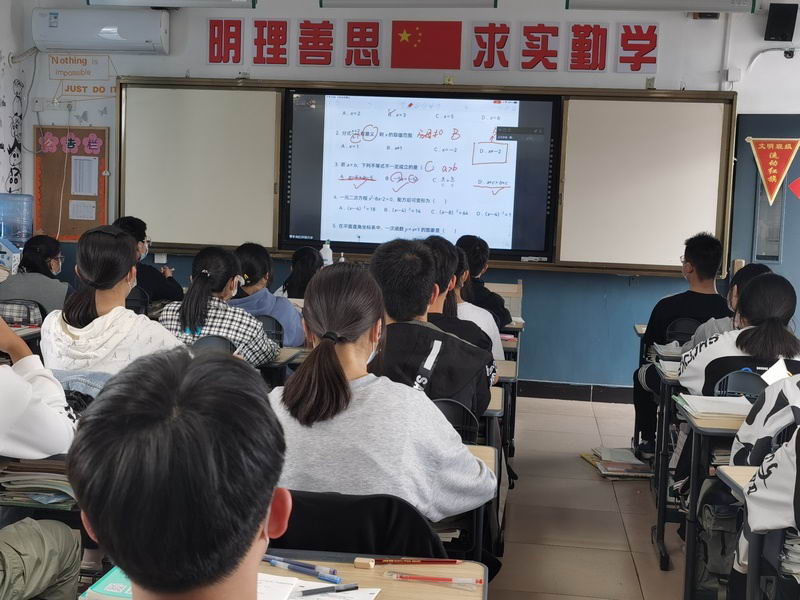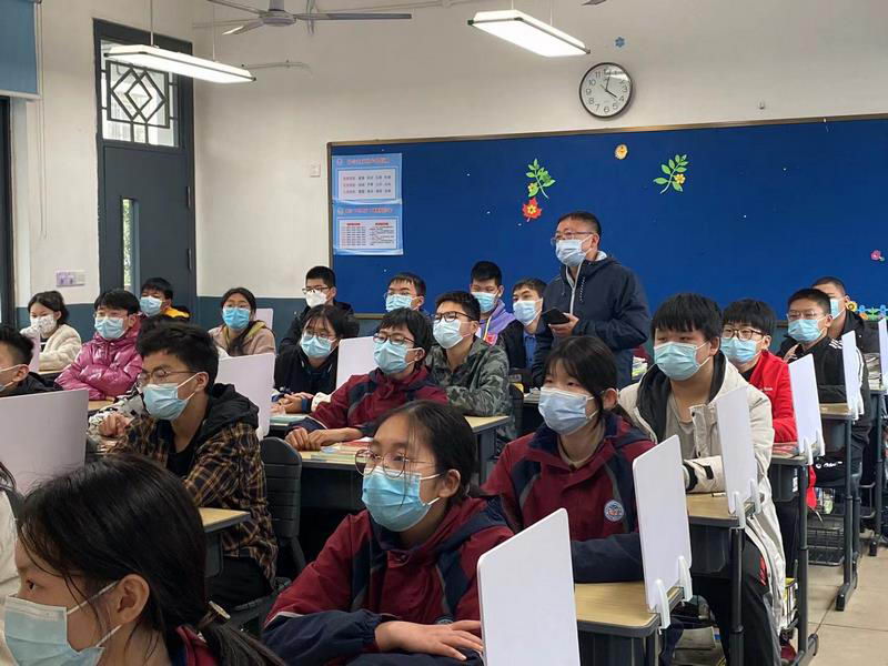 疫情特殊时期,初三个别老师和学生因各种原因需要居家隔离,但所有老师和学生一节课也没有拉下。一旦有突发情况,马上紧急处理。居家学生隔着屏幕感受到与在校学生一样的课堂待遇。为了让居家老师更高效给课堂学生上网课,学校中层干部、初三班主任“变身”为临时助教了,协助居家老师一起上课。