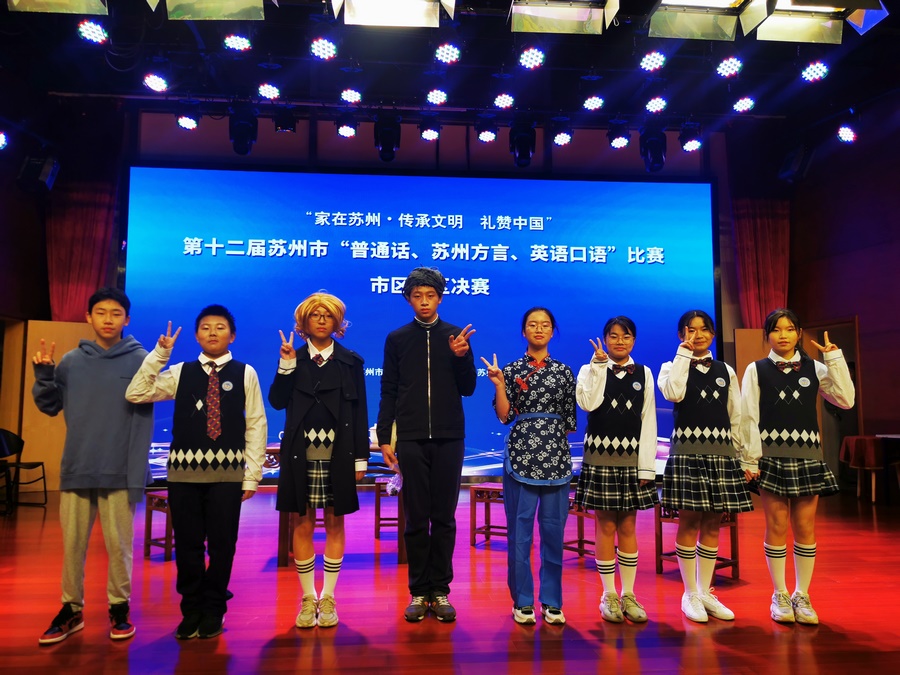 11月24日,第十二届“普通话、苏州方言、英语口语”比赛决赛在苏州市青少年活动中心隆重举行,家园学子斩获团体一等奖。