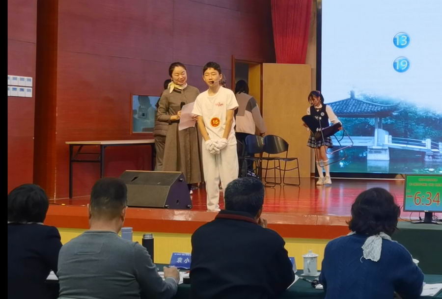 主要选手张琰同学还接受了普通话、苏州话、英语三位评委老师的现场问答。