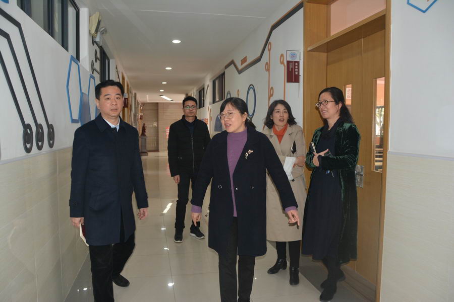 在陶红校长、田明亮书记的陪同下,朱局长一行实地查看了校园整体环境,教学场馆,走进教师办公室,详细了解学校寒假期间工作开展、开学安全稳定工作等。