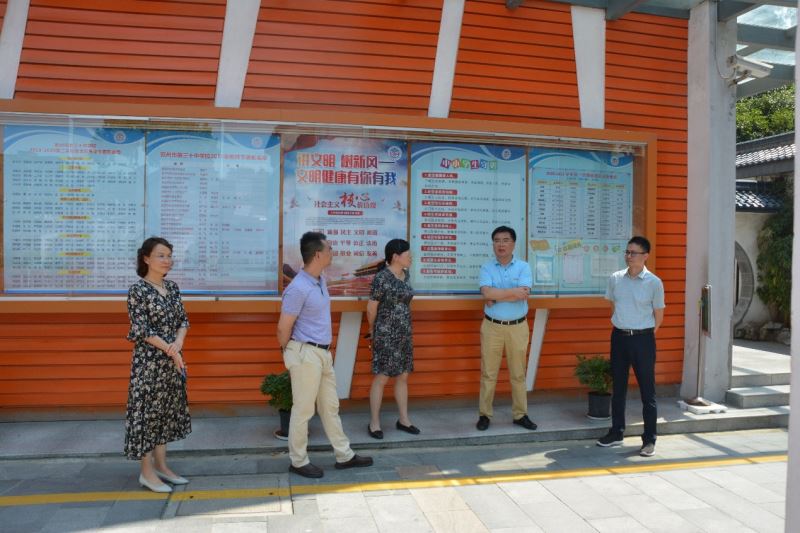 2020年9月4日上午,苏州市教育局华意刚副局长、徐展副处长来到我校,进行秋季开学走访,检查开学工作,为三十中送来了教育局的关怀,全体校级领导班子陪同。