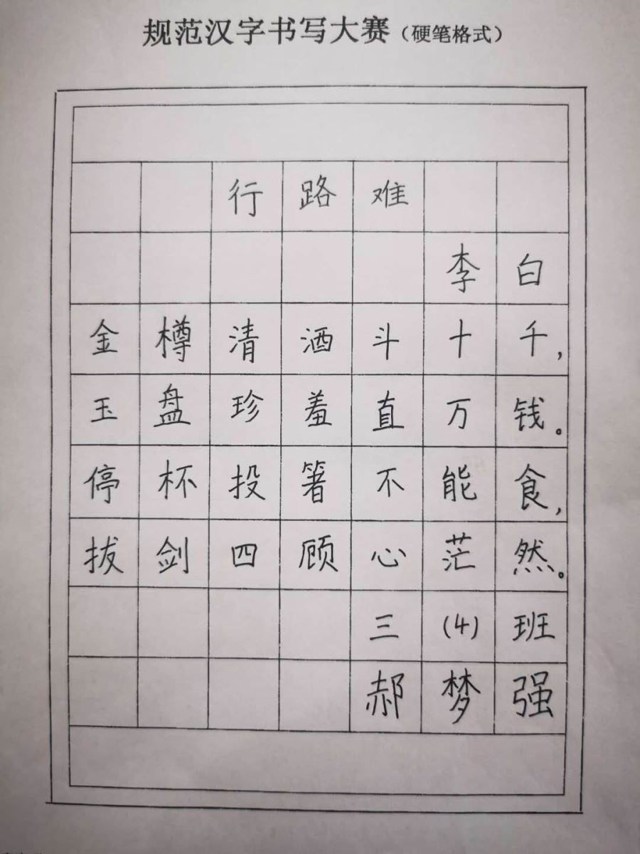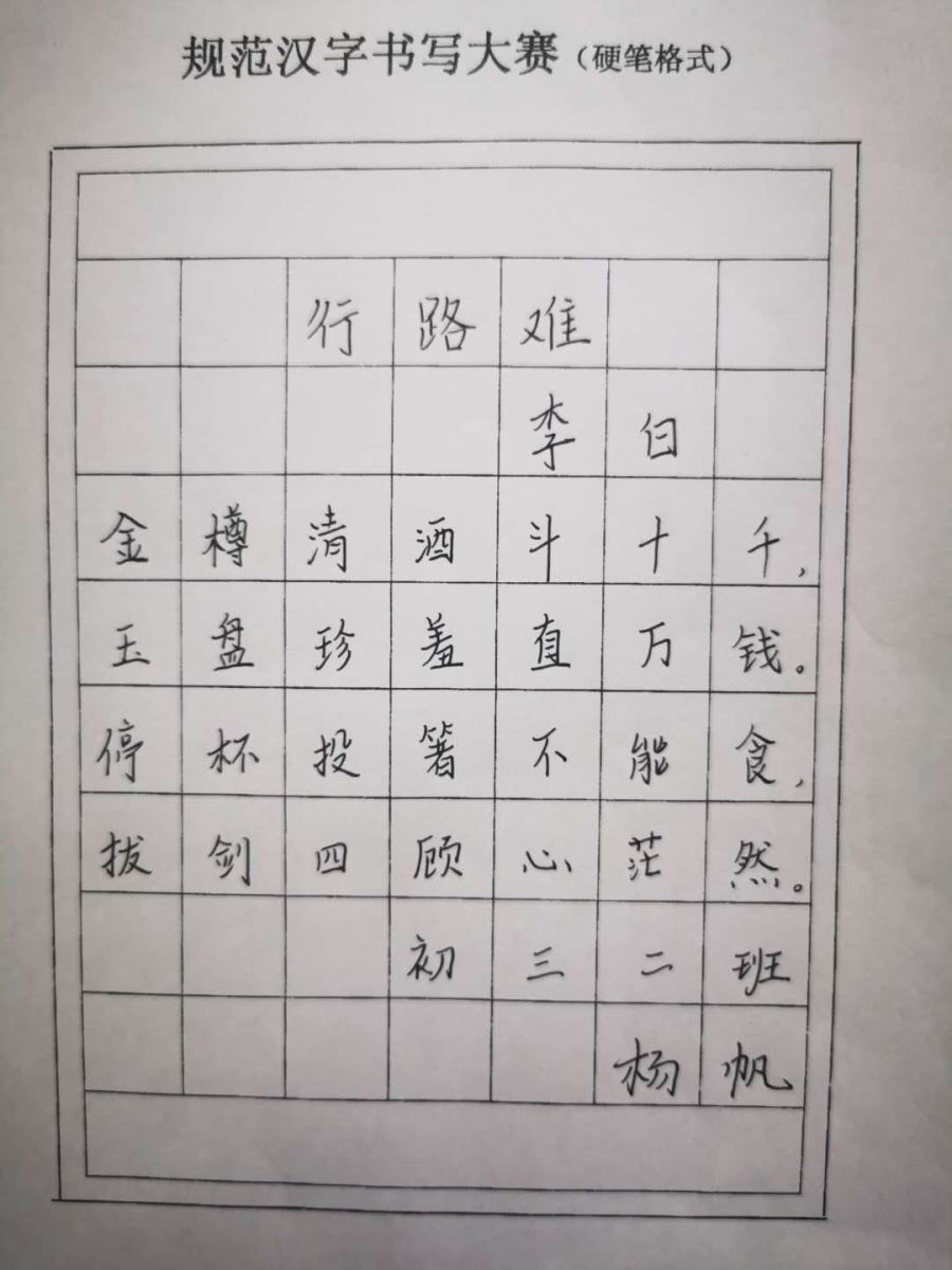 “书写经典,传承文明”硬笔书法大赛获奖名单