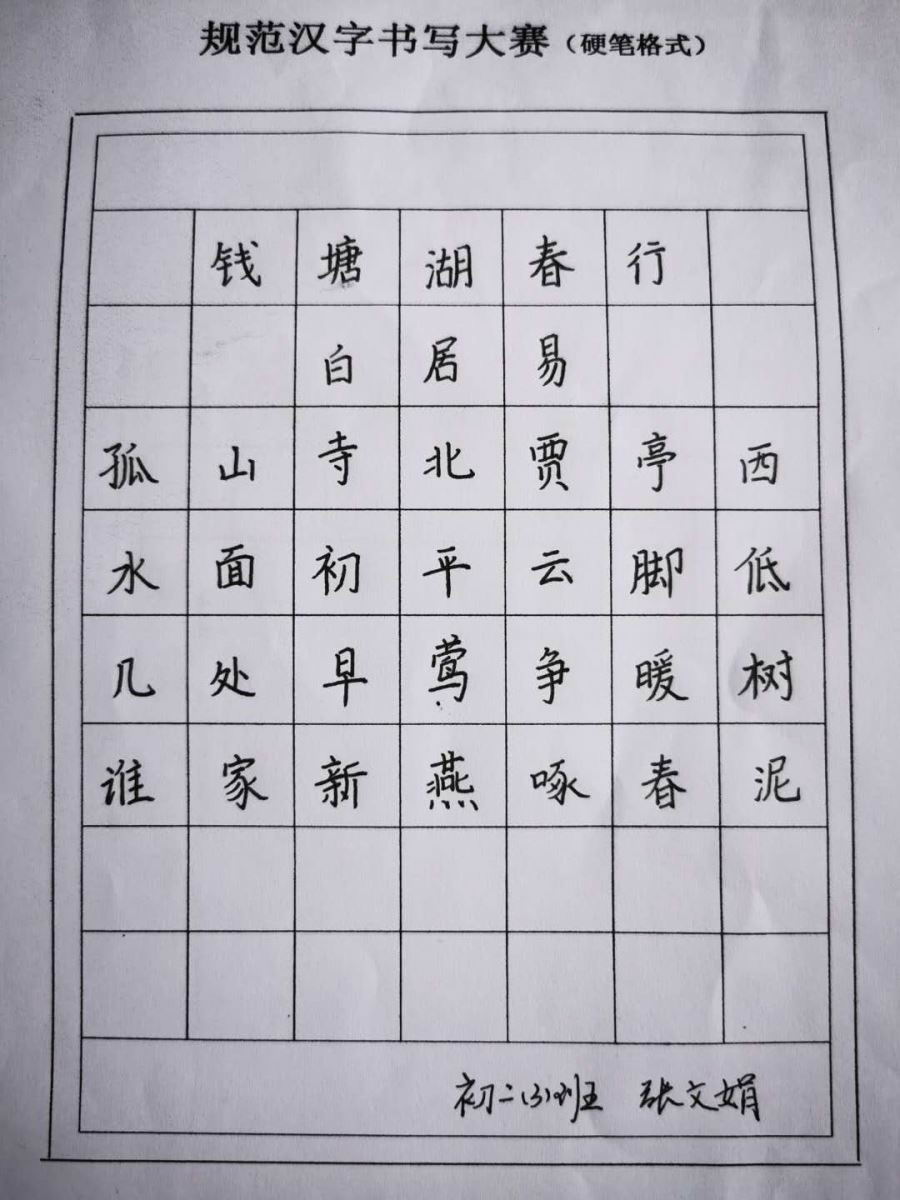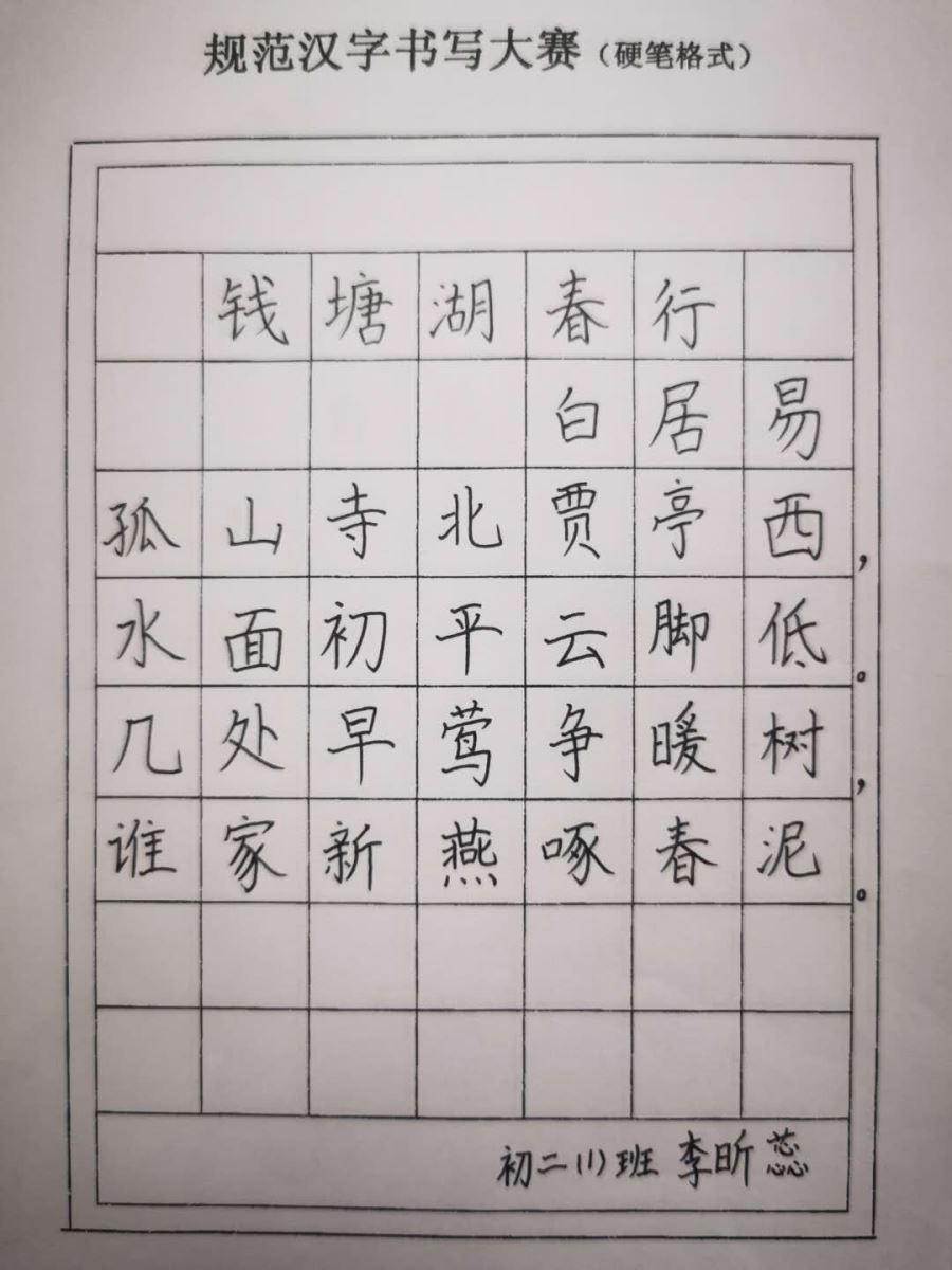 今日,为了配合苏州市语委办即将举办的汉字书写大赛活动,学校语文组在全体学生中间举行了“家园学子硬笔书法大比拼”活动,在语文组老师的指导下,同学们认真参赛,用心书写,将自己对汉字文化的理解述诸笔尖,将经典书写,文明传承!