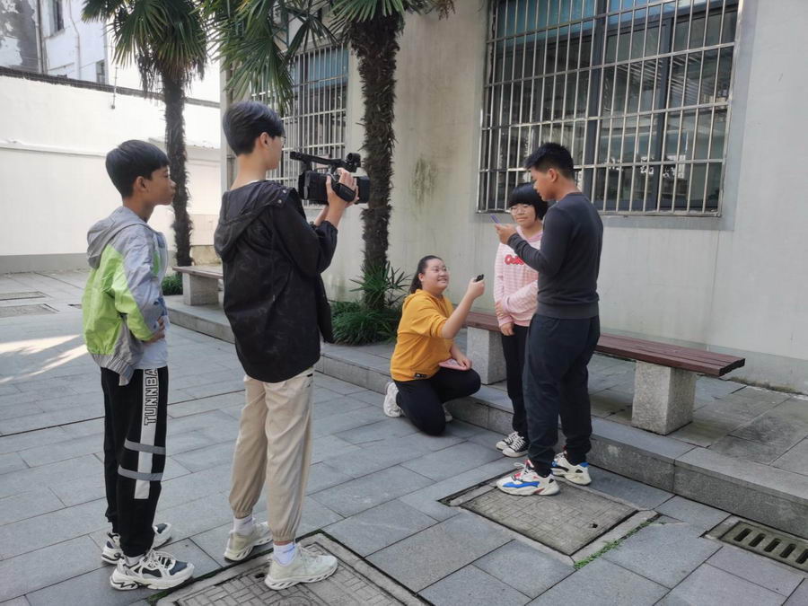 在疏散演练现场,校电视台的同学们充分发挥了自己的兴趣特长,有的肩扛摄像机,有的手举手机,奔跑忙碌在操场的每一个角落,从各个角度抓拍活动照片,还就此次活动对师生进行了采访。