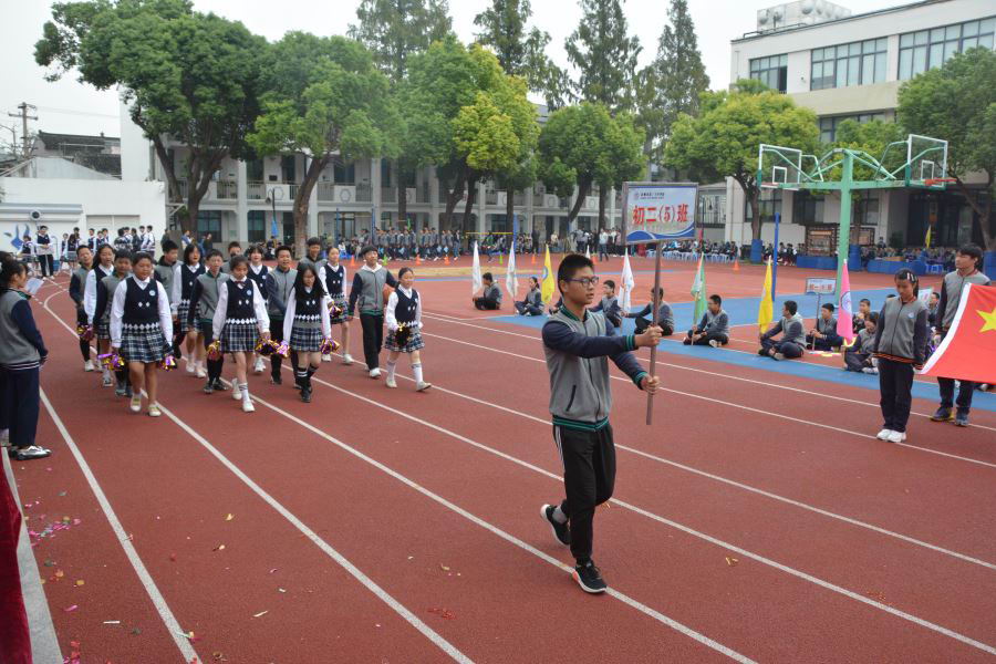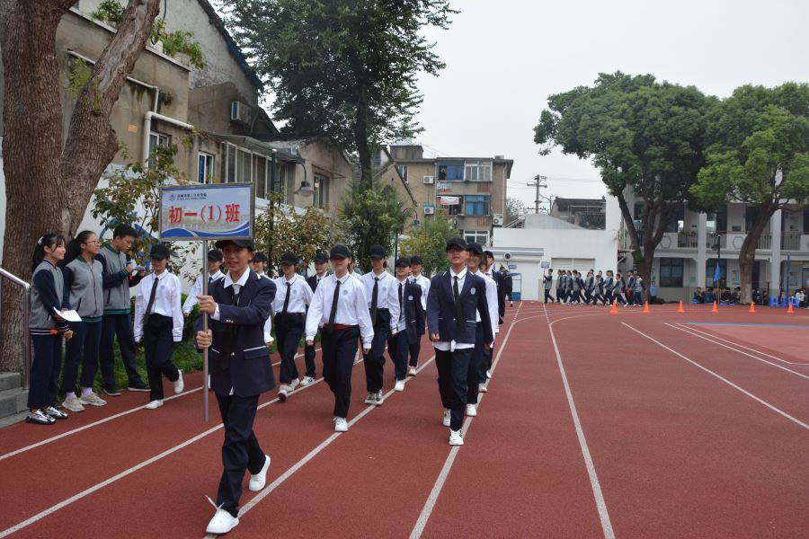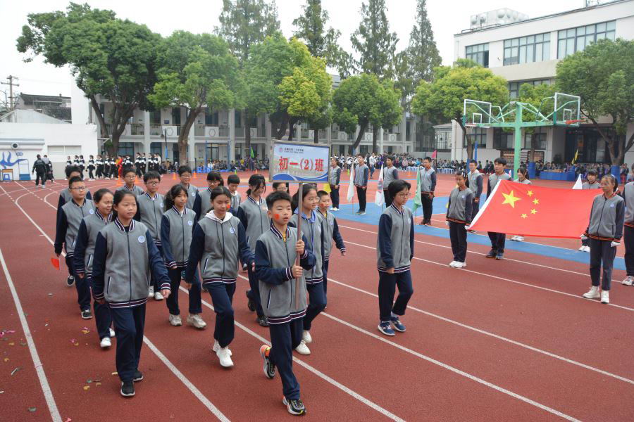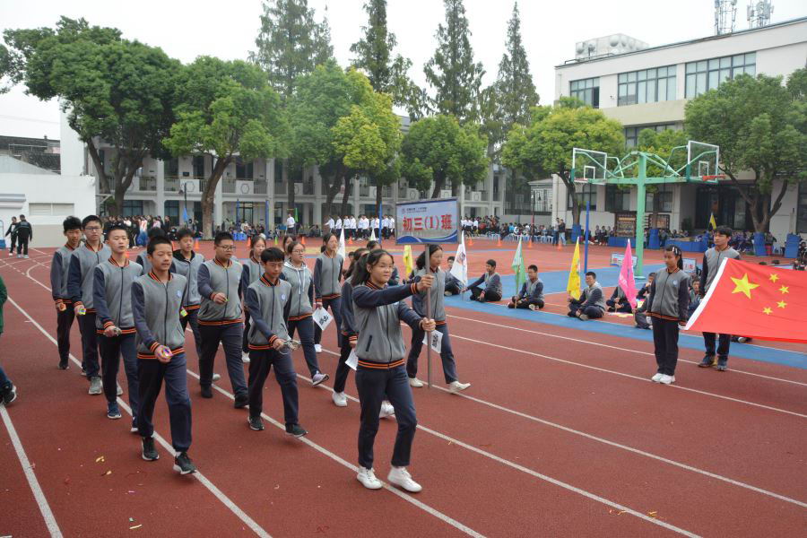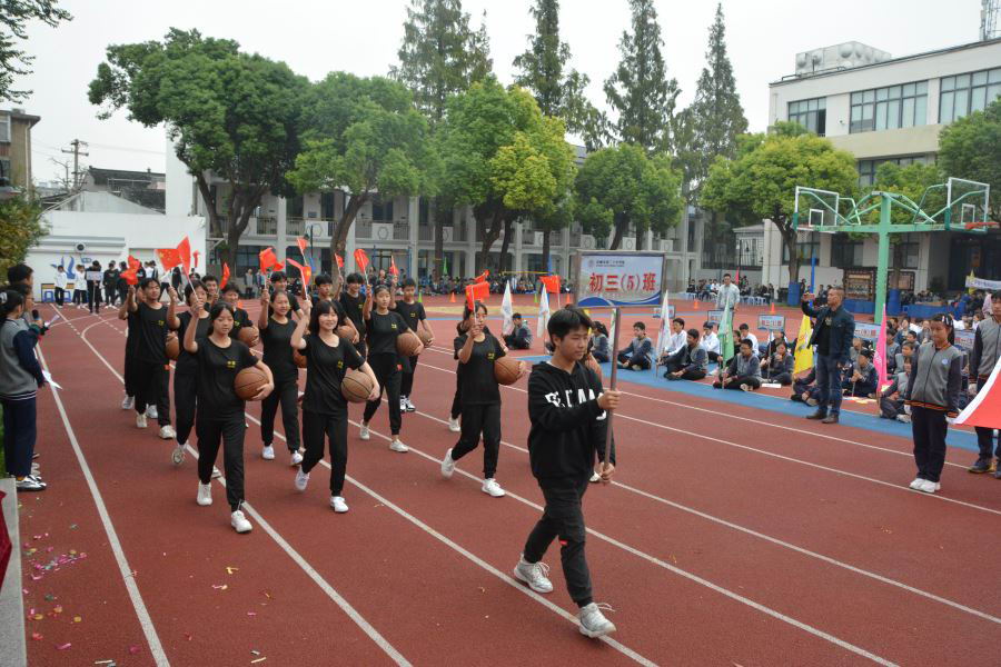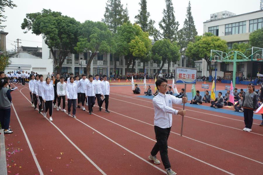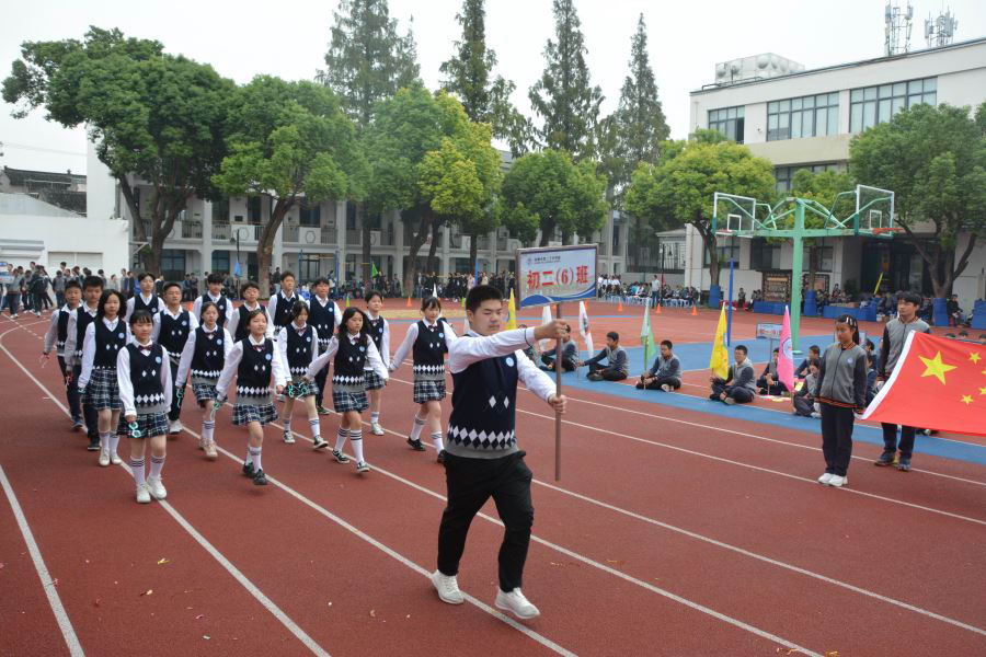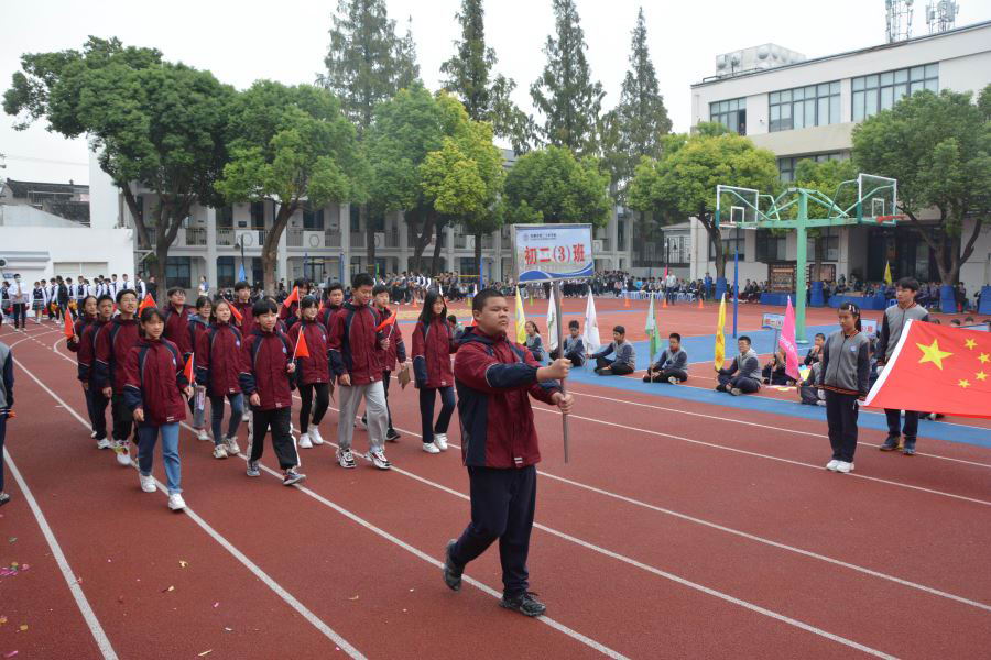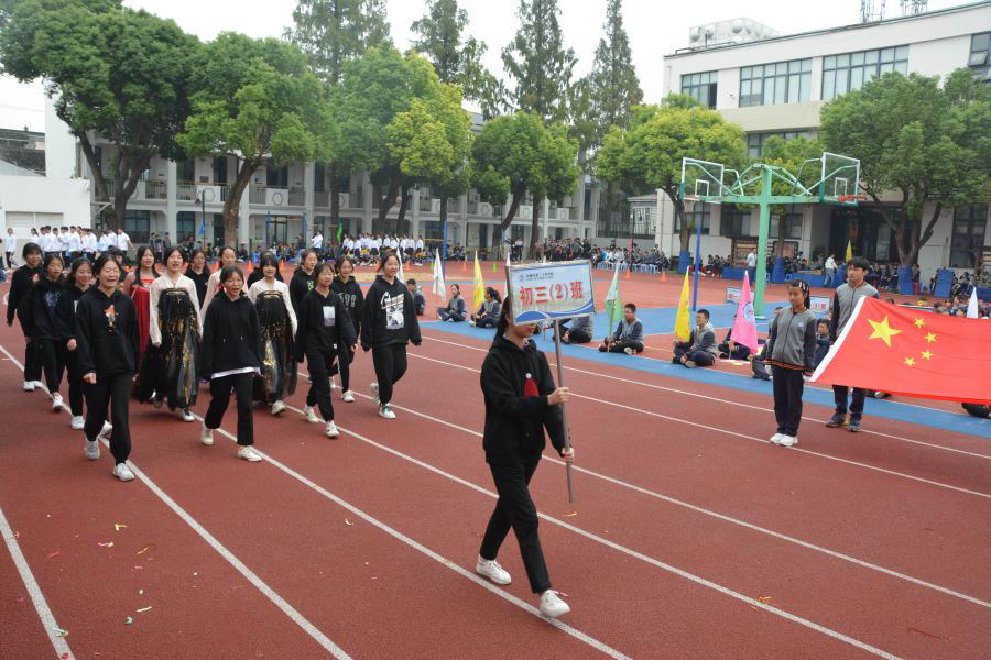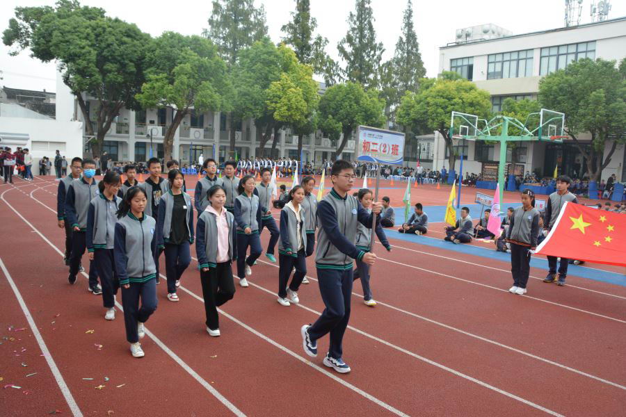 初三(2)班他们迎着太阳的光辉,迈着整齐的步伐,以饱满的精神、飒爽的英姿,准备在本次运动会上大显身手。