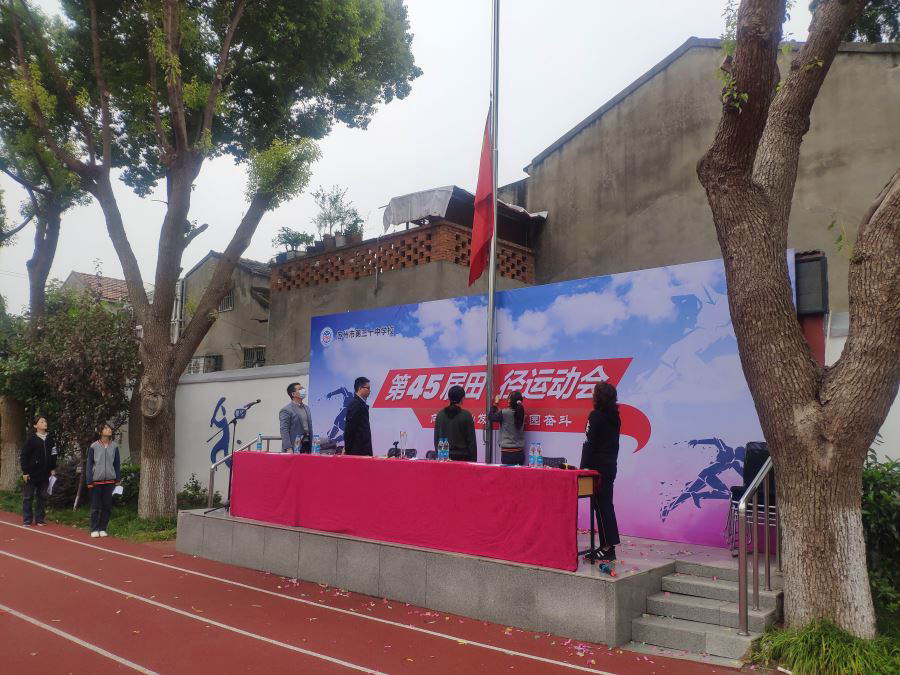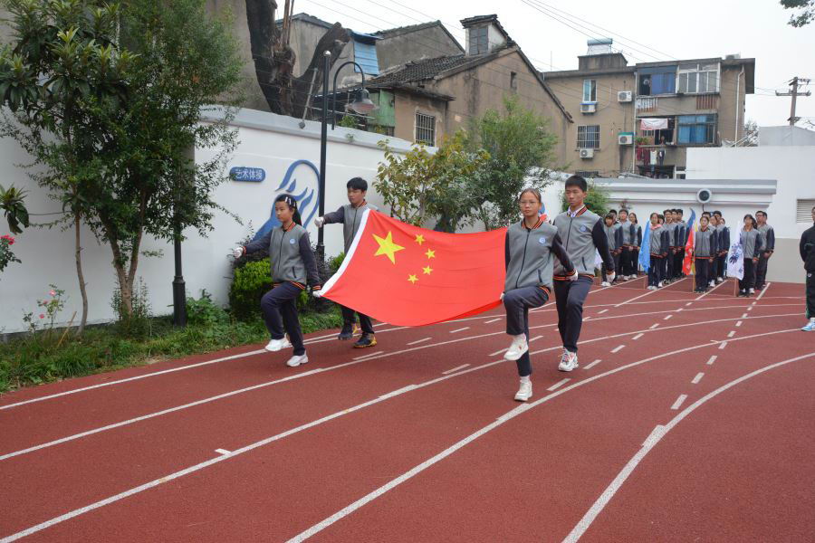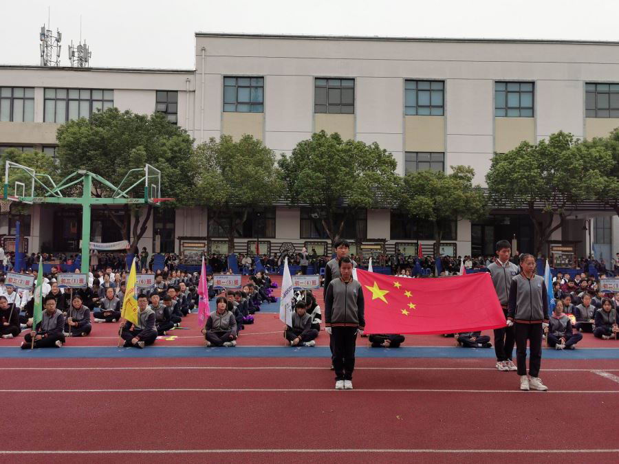 入场仪式后,伴随着庄严肃穆的义勇军进行曲,主席台升起五星红旗,全场师生庄严肃立。