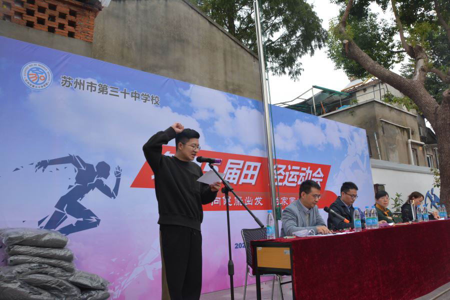 田明亮书记致开幕词,他首先为筹备运动会付出辛劳的体育组、班主任、师生员工,和参与运动会的运动员、裁判员、工作人员表示衷心的感谢诚挚的问候,并阐释了本届运动会的主题“向健康出发,为家园奋斗”的内涵。田书记希望同学们能领会拼搏的运动精神、习得文明的体育素养、锻炼自主的管理能力、凝练班级的文化精神,在参赛、观赛、展示、服务,许多环节、众多岗位中积极参与、尽心付出、勇于担当,在建校50年之际为家园学校献礼!