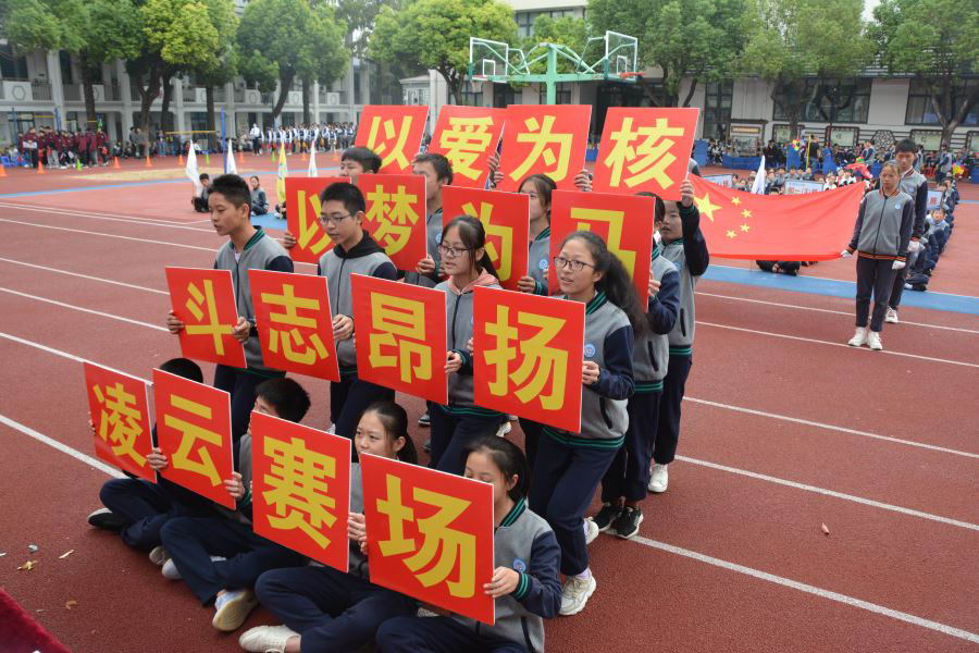 初二(6):放飞理想、放飞激情、勇往直前、永不言败。祝愿他们在本次运动会中实现自我!