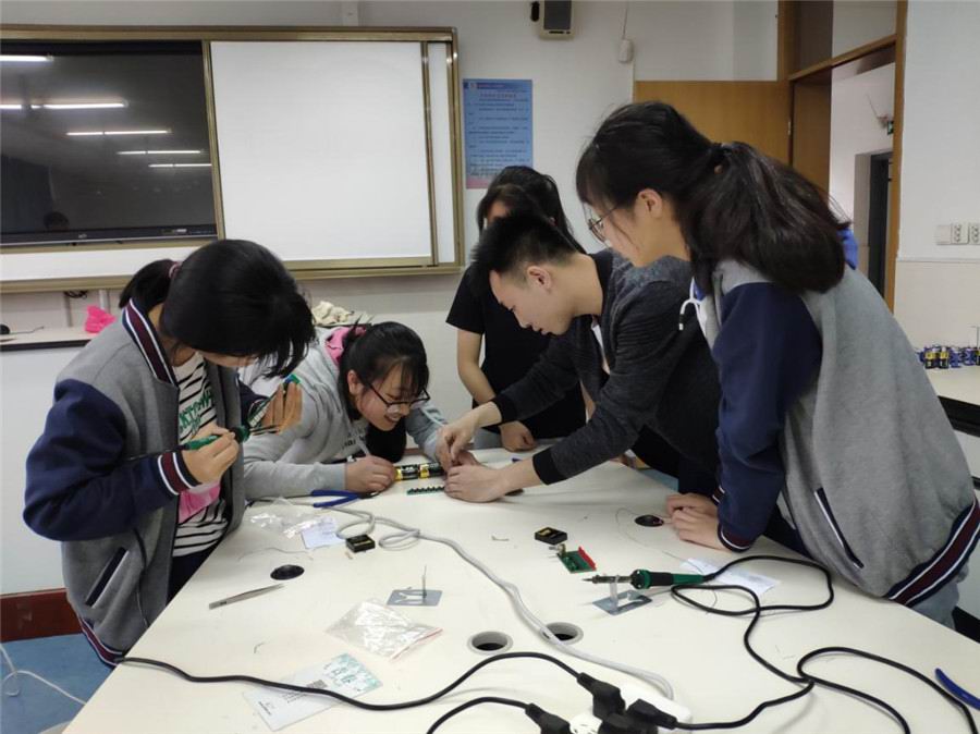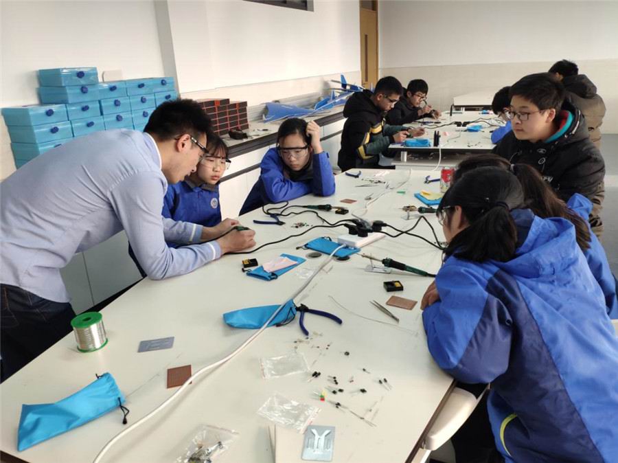 “创意电子焊接”项目的基础是我校本学期开设的社团课“电子电路”,我们邀请了苏州电子信息学校的成冲老师担任了本课程的授课专家。