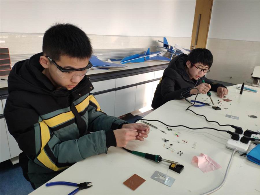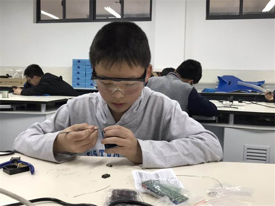 成老师有很强的亲和力,技术娴熟,极受学生的喜爱,短短一学期,初一初二从未接触过电子电路的学生们,认识了很多电子元器件,熟悉了各种电路,还能熟练使用电烙铁,一件件可爱的电子小玩意儿从他们手中诞生,能亮灯,能放音乐,甚至还能弹琴。