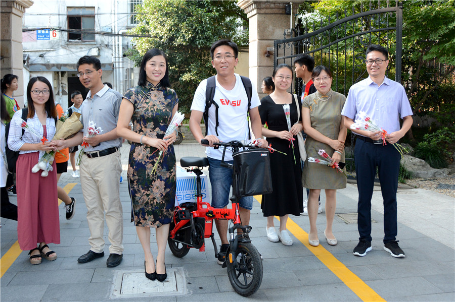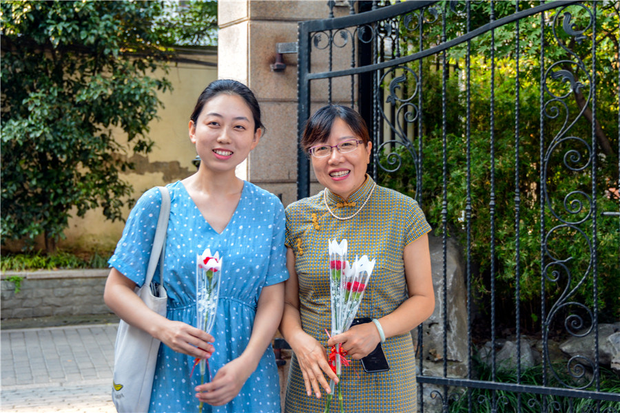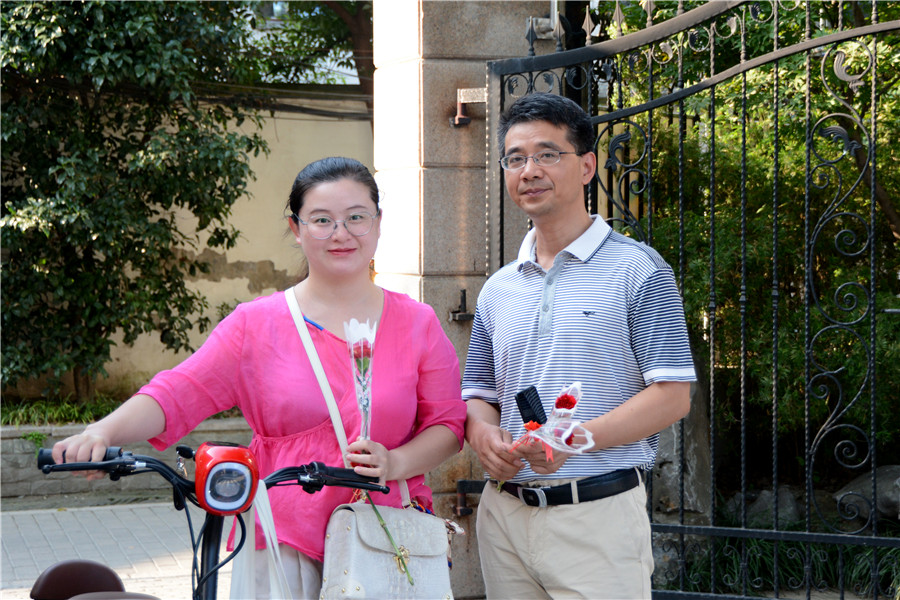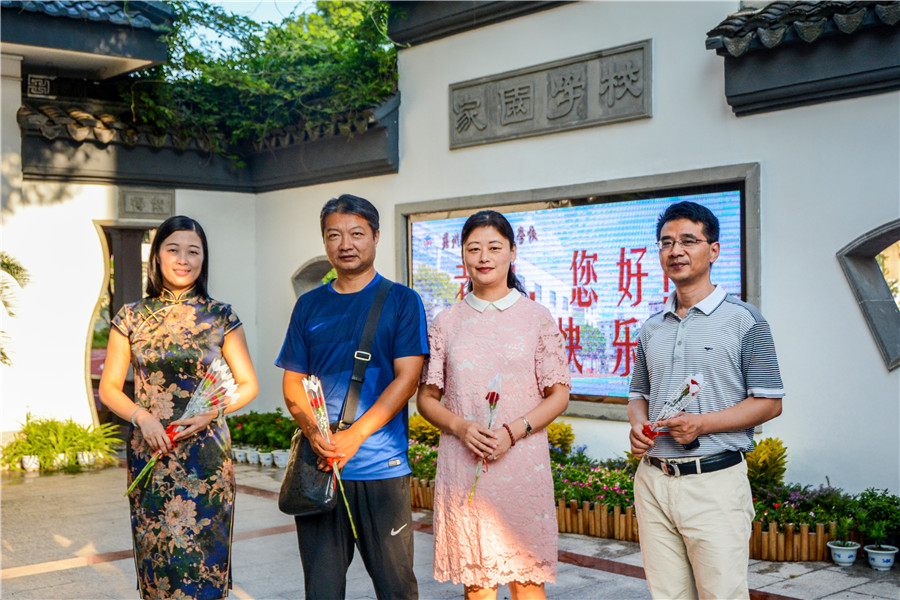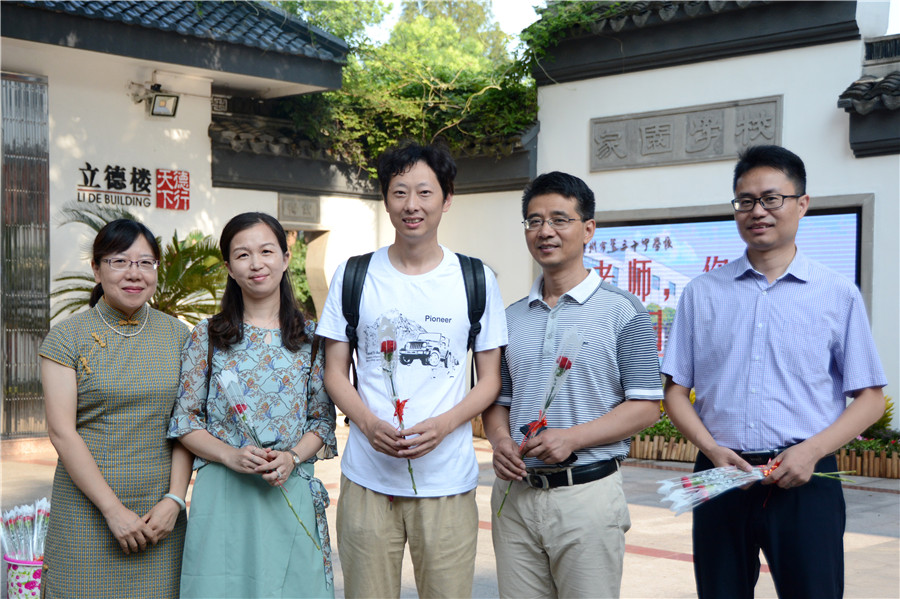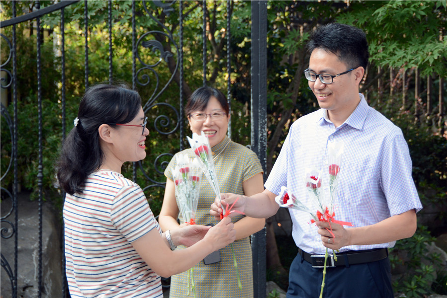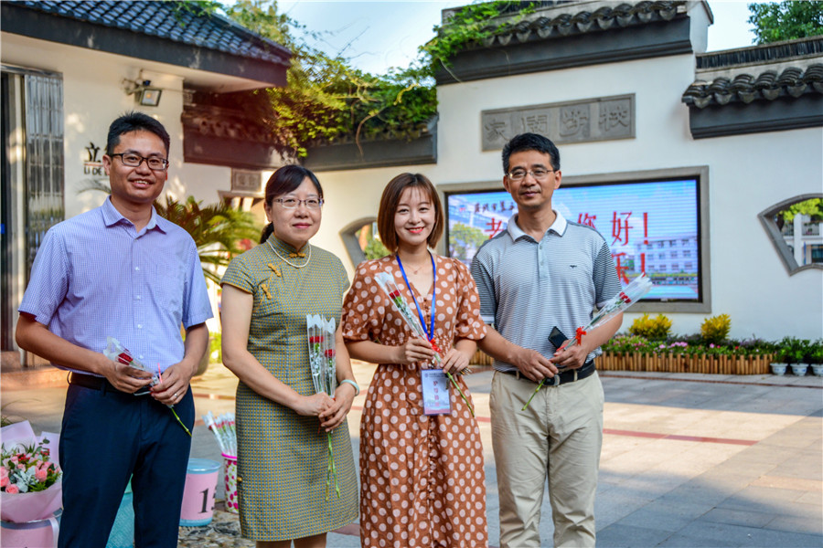 清晨,校领导站在校门口迎接师生进校园,并亲手为每一位老师送上美丽的鲜花,向长期默默耕耘在教育、教学、管理和服务岗位上的全体教职工致以节日的问候。