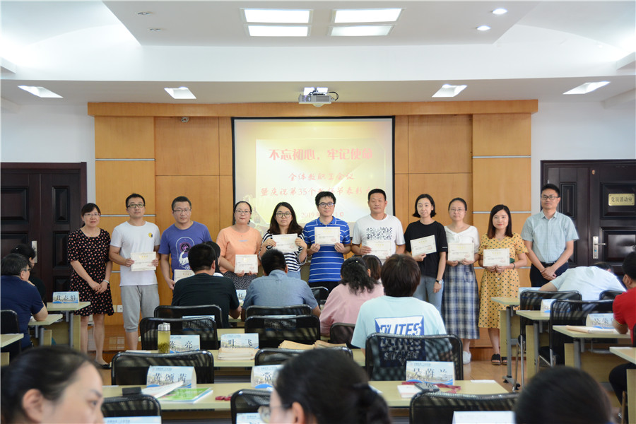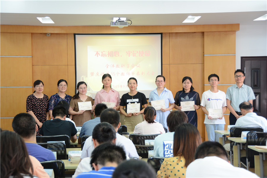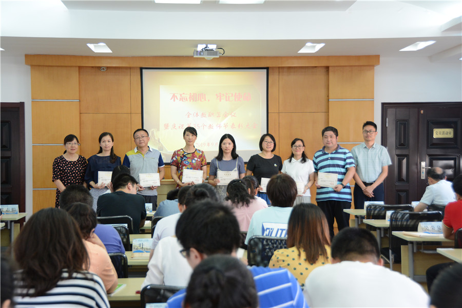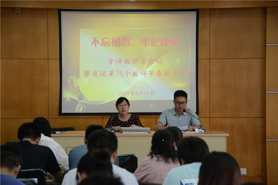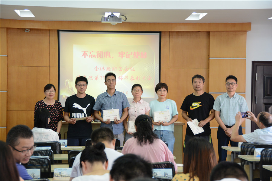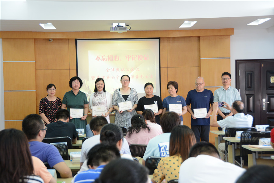 三尺讲台育桃李,一支粉笔写春秋。教师是人类灵魂的工程师,是人类文明的传承者,承载着传播知识、传播思想、传播真理,塑造灵魂、塑造生命、塑造新人的时代重任。2019年9月10日是我国第35个教师节,在这个温暖的节日里,我校紧紧围绕“不忘初心、牢记使命”这一主题,举办了隆重的教师节表彰活动。