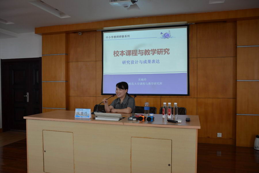 下午一点,南京师范大学吴晓玲教授作了题为“校本课程与教学研究——研究设计与成果表达”的讲座。
