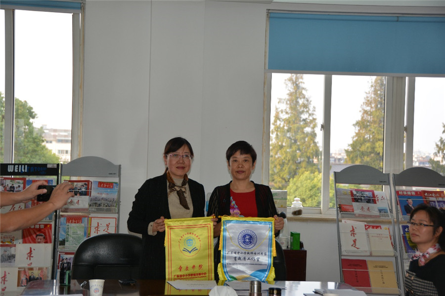 10月18日,广东省中小学教师培训专家肖起清工作室一行来到我校,通过座谈交流了解跟岗校长的学习情况以及我校教师专业发展需求等,广东肇庆学院省级中小学教师发展中心海域我校签订了《教师专业发展学校共建协议书》,本着“资源共享、相互协作、互惠互利、共同发展”的原则,发挥各自的资源优势进行合作,为教师专业发展搭建良好平台。