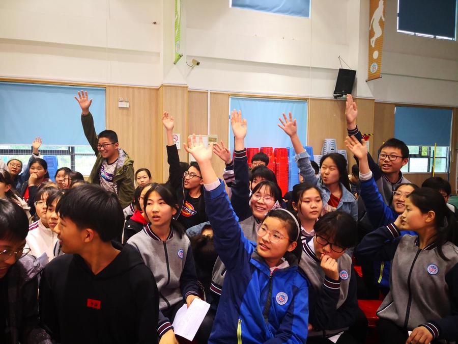 陶校长大赞学生会主办的这次活动,夸他们“策划好”“能力强”,现场气氛非常活跃,组织策划得一点也不亚于老师。同时,陶校长对同学们的读书也提出了三点建议,读书要讲究量、要讲速度、要讲效度,希望同学们要多读书,读好书。