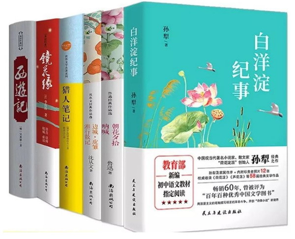 七年级上册: 1.《朝花夕拾》 2.《西游记》 3.《白洋淀纪事》