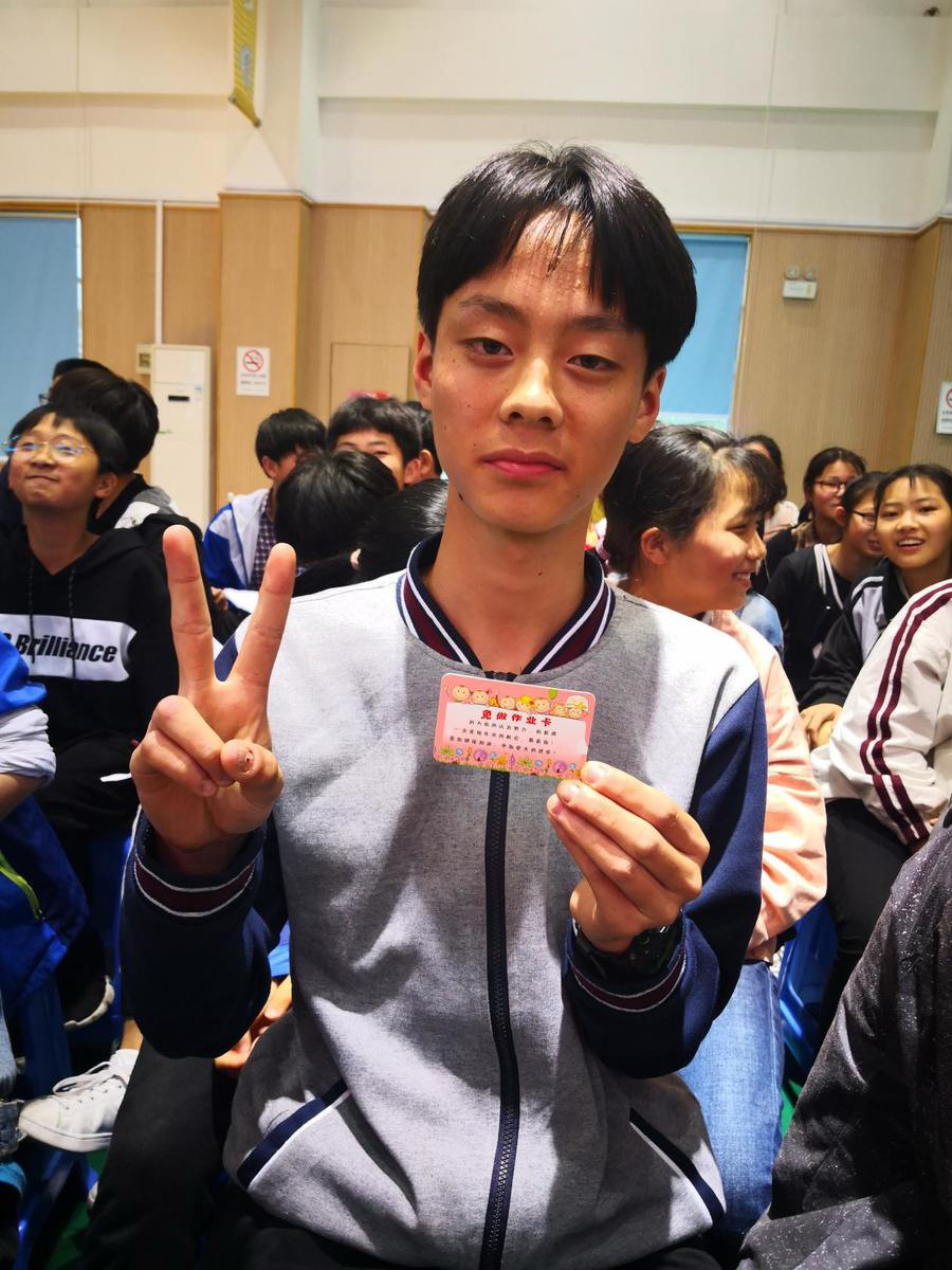 经过角逐,“最强答题王”被初二(1)班夏煜夺得!怎么没有奖品?奖品居然是——五一小长假作业免做!