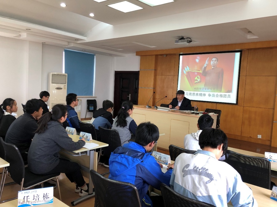 校外辅导员裴国荣老师给同学们讲述了周恩来总理的丰功伟绩,还带来了几件周总理担任国务院总理期间学习、生活、工作、出访的宣传画、门券等纪念品。一幅幅生动的图片,一件件珍贵的藏品,生动客观地记录了周恩来同志长达50余年的革命生涯,再现了周恩来同志为党和新中国的创立与建设所做出的伟大贡献。