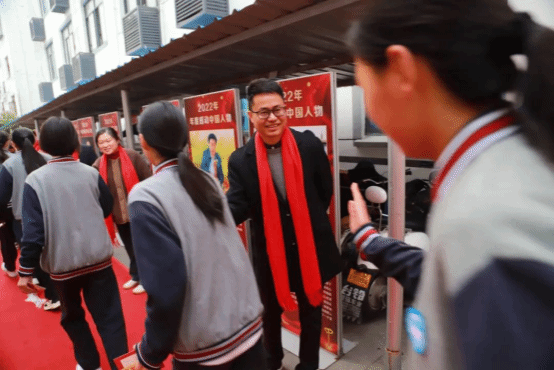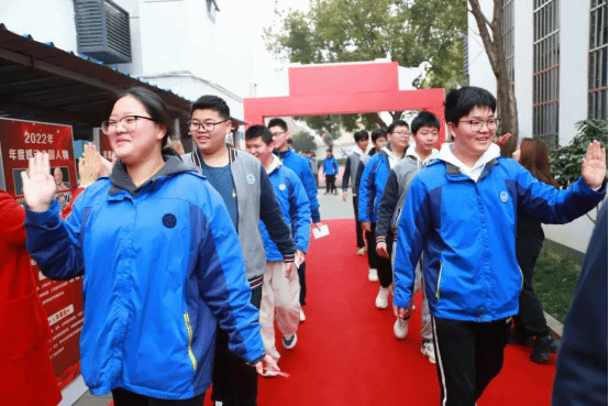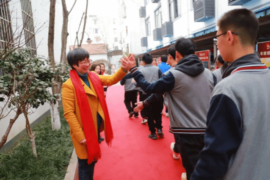 各班按顺序走上红地毯,越过成功门,与校领导和老师们击掌。
