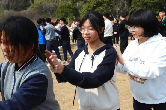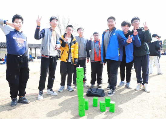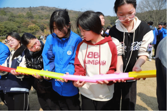 学校也为学生们准备了丰富多彩的拓展活动:登山打卡、达芬奇密码、合力筑塔、珠行千里。