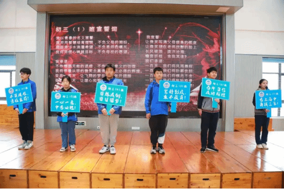 每班选派一位学生宣誓,通过宣誓仪式,坚定了中考目标,树立了信心。