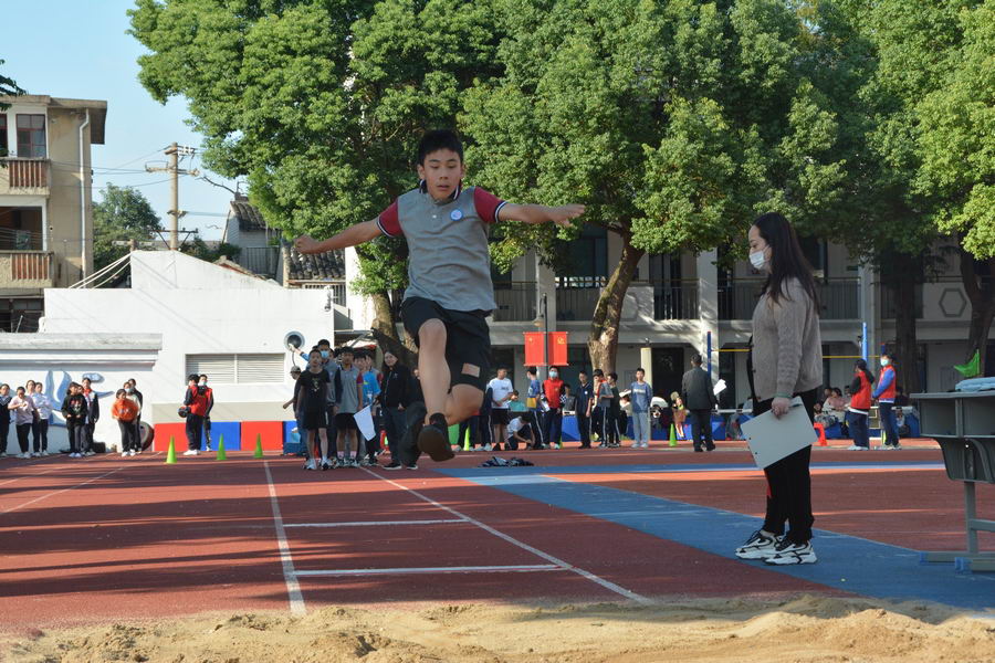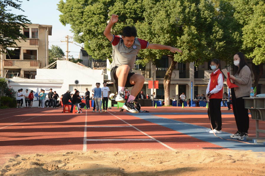 准备、助跑、起跳、落地是力量与美感的结合;一跃而下,运动员们稳稳地落入沙坑,一气呵成的动作,是背后日复一日辛苦训练的成果!
