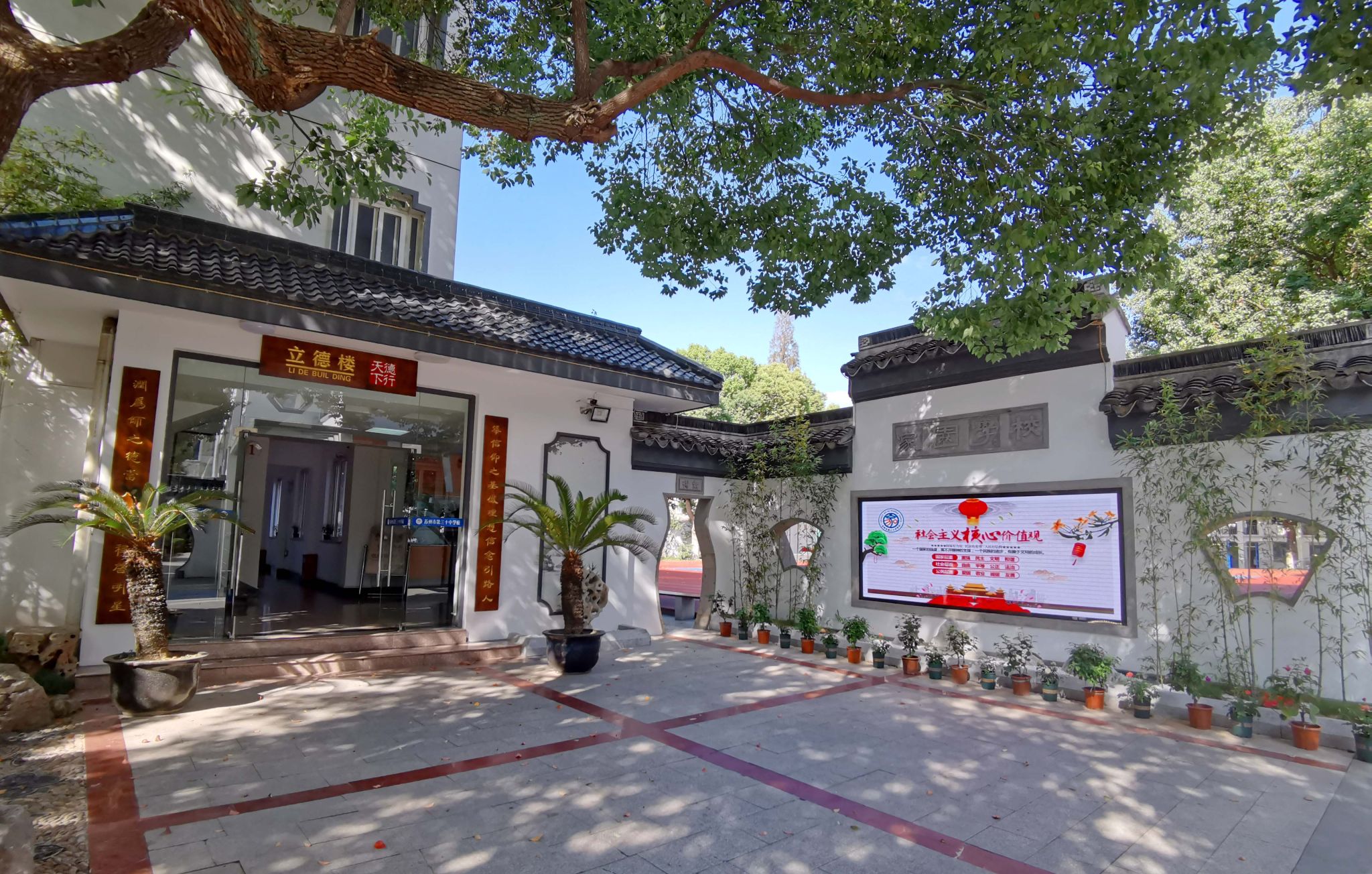 苏州市第三十中学校始建于一九七〇年八月,为一所教育现代化初中校。学校南邻西园、留园,西毗虎丘山麓,北枕山塘清波,校园林木扶疏芳草萋萋,周边粉墙黛瓦古巷深深。步入不惑的三十中学,小巧中显井然,错落中呈别致,隽永清秀,人杰地灵。